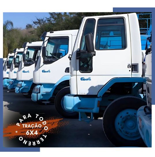 Frota 6x4 atualizada, totalmente equipada, inclusive com tanques Gascom para locação de caminhões.